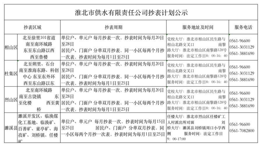 抄表計劃公示