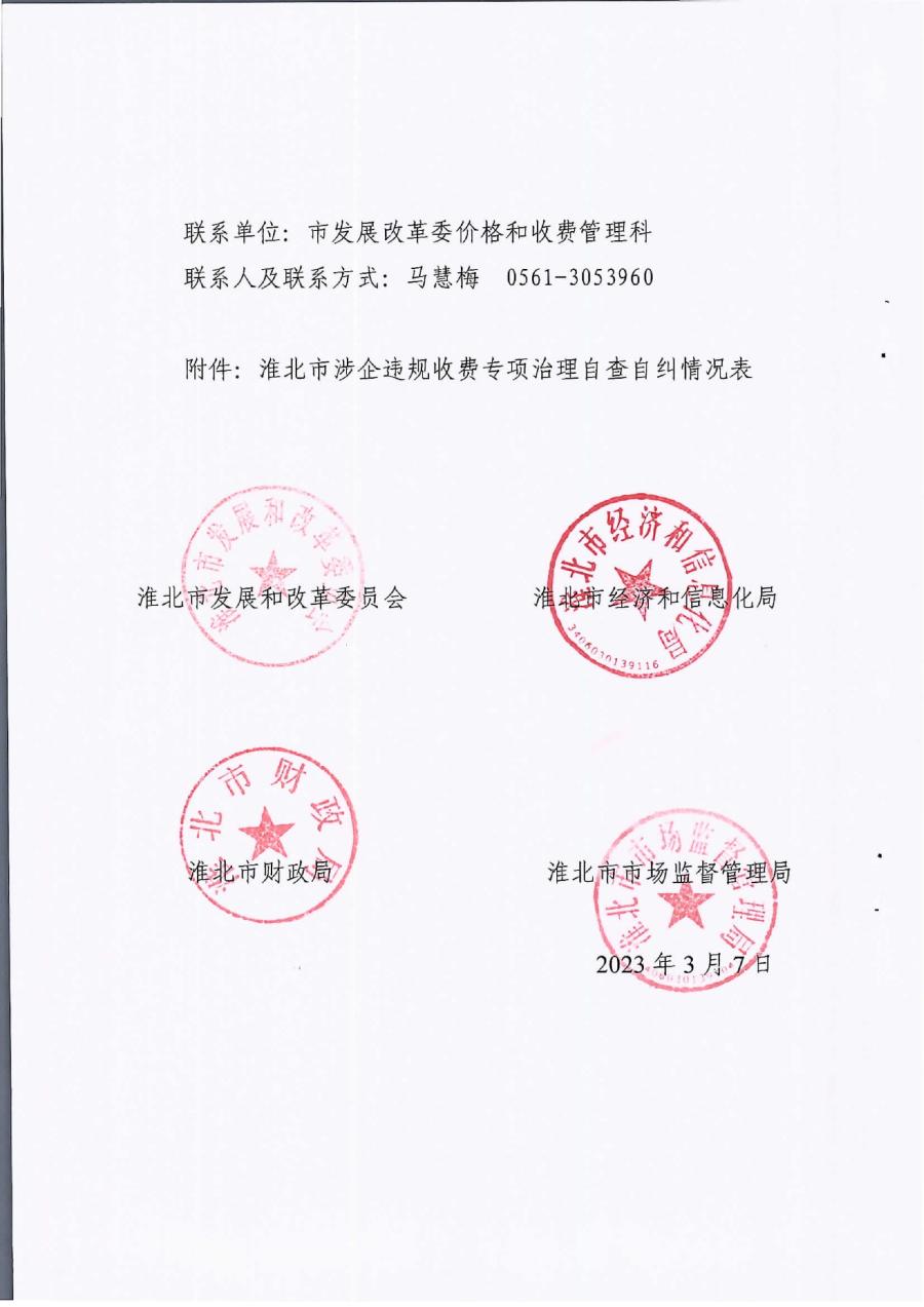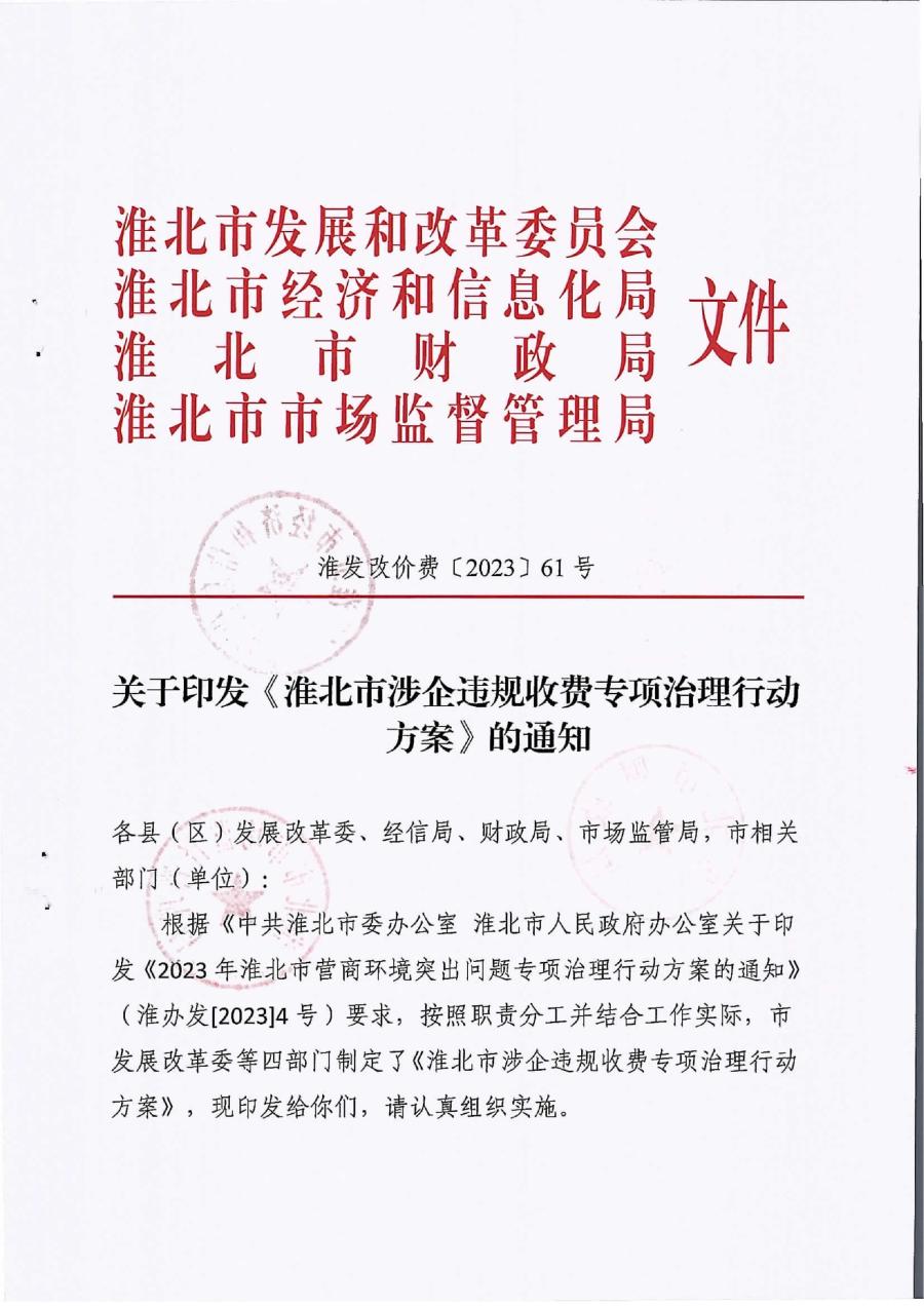 關于印發《淮北市涉企違規收費專項治理行動方案》的通知 淮發改價費【2023】61號