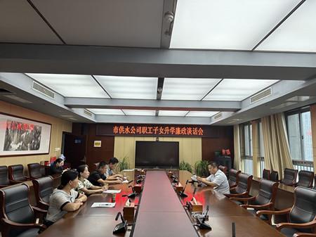 “又是一年升學季,廉潔提醒不放松”。為認真貫徹落實中央八項規定及其實施細則精神,加強節點廉政教育,8月17日下午,市供水公司組織召開職工子女升學廉政談話會。公司黨支部紀檢委員、副總經理任飛對公司本年度有子女升學的干部職工進行集體廉政談話,就大操大辦,違規舉辦“升學宴”“謝師宴”等苗頭性、傾向性問題,早打招呼,提前預防。