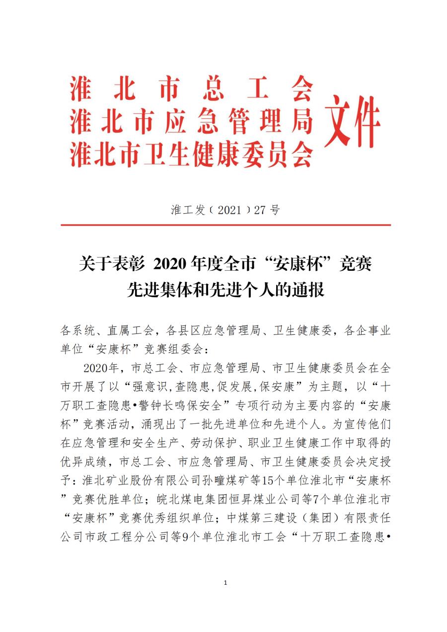 關(guān)于表彰 2020 年度全市“安康杯”競賽 先進(jìn)集體和先進(jìn)個(gè)人的通報(bào)