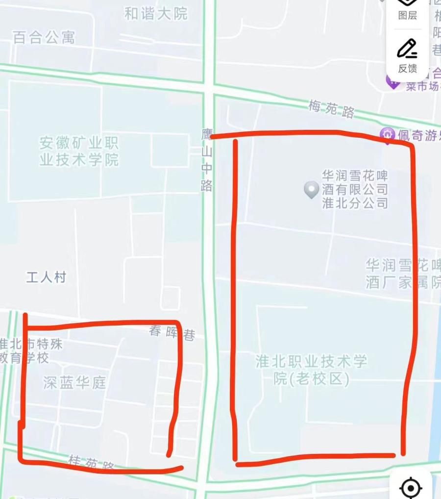 計劃影響范圍:影響深藍華庭,淮北市職業技術學院(老校區),雪花啤酒廠