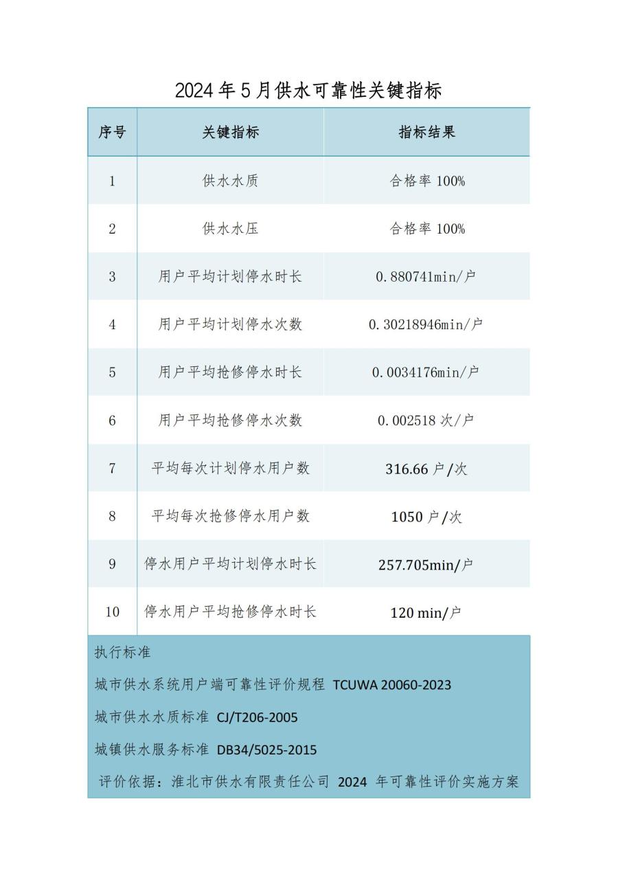 2024年度5月份淮北市供水可靠性關(guān)鍵指標